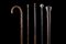 Lot comprising five wooden and other materials walking sticks, different periods and measures (defects)