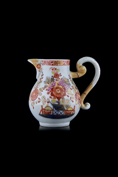 Manifattura di Meissen, secolo XVIII. Lattiera in porcellana dipinta in policromia a fiori e decorazione orientale detta a "tavolino" (h. cm 10) (difetti e restauri)