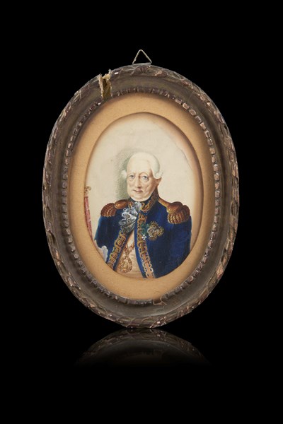 Maestro dell'inizio del secolo XIX "Ritratto di Carlo Felice" acquerello ovale
