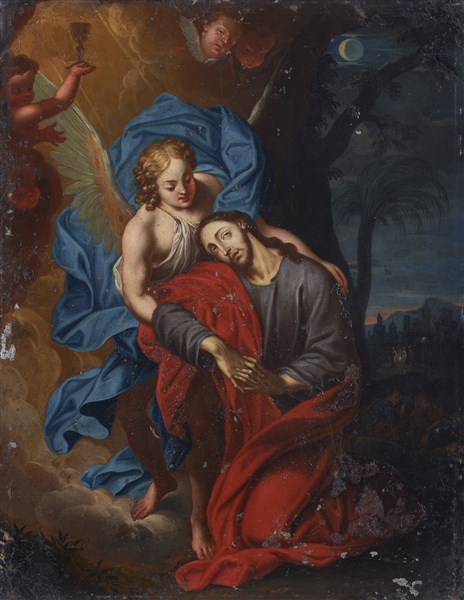 Ignoto Cristo sorretto da un angelo nell'orto del Getsemani Olio su lamina di
