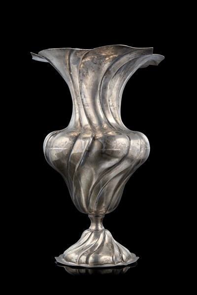 Vaso in argento a spirale. Titolo 800. Punzoni di difficile lettura (h. cm 39) (g 1100) (difetti)