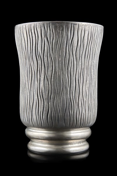Vaso in argento di gusto Novecento con corpo decorato a motivi stilizzati. Tito