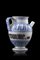 Manifattura di Bassano, fine secolo XVIII. Orciolo in maiolica decorata in monocromia blu su fondo bianco a lobature stilizzate, cartiglio centrale a nastro con iscrizione apotecaria a caratteri gotici in bruno manganese (h. cm 20) (difetti e restauri)