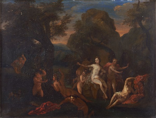 Scuola fiamminga del secolo XVII Diana e Atteone Olio su rame, cm 19x25 In co