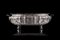 Centrotavola biansato in argento a quattro piedini mossi terminanti a riccioli.