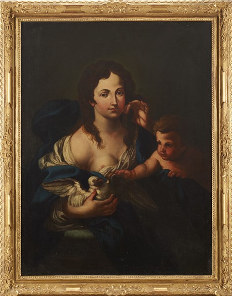 Lot 525 | Scuola emiliana del secolo XVIII Venere amore e colomba Olio su tela, cm 98x73