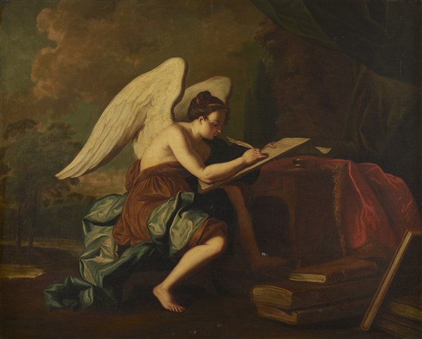 Scuola della fine del secolo XVIII-inizio XIX Angelo scrivente Olio su tela, c