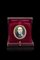 Portrait of Benito Mussolini datable to 1923. Oval porcelain travel miniature painted by miniaturist Italo De Bernardi, Milan. Signed at lower right "Italo" in red. Contained in wooden and Morocco leather-covered case with the date October 28, 1923 and a bronze Fasces, first type. Probable gift to Benito Mussolini on the anniversary of the "March on Rome"