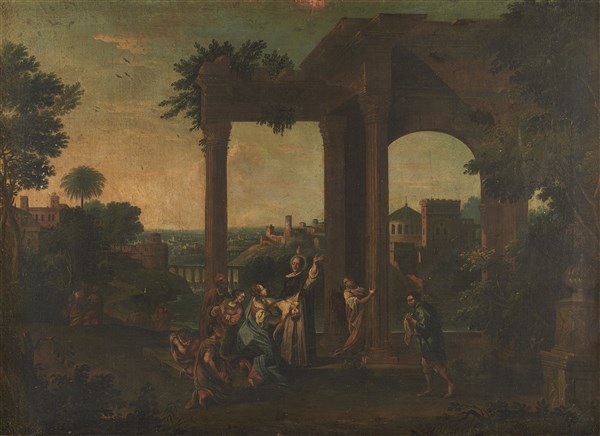 Lot 576 | Scuola del secolo XVIII Miracoli di San Vincenzo Ferrer Coppia di dipinti a ol