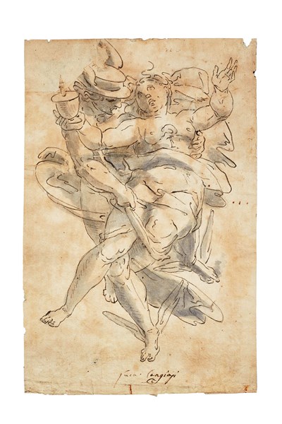 two drawings after Luca Cambiaso,"The Rest from the Flight into Egypt", pen and brown ink (watermark not identified) (mm 256x370) and "Mercury and Psyche" (mm 312x204), pen and blue watercoloured ink (mm 312x204)