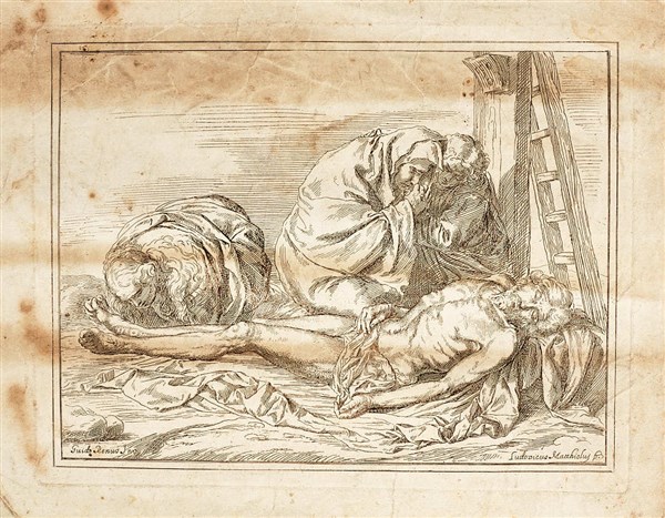 an etching by Lodovico Mattioli from Ribera "Lamentation over the Dead Christ" (250x329 mm);