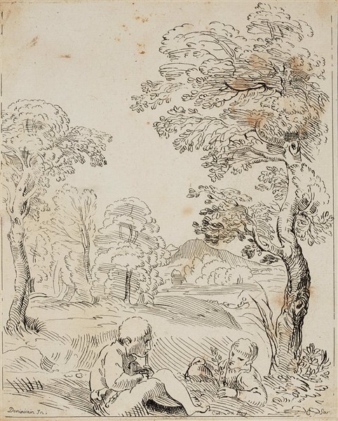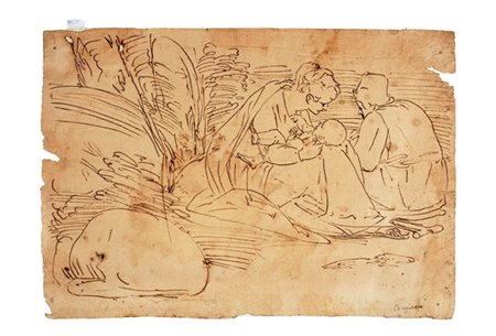 Lotto composto da:due disegni da Luca Cambiaso, raffiguranti "Il riposo dalla