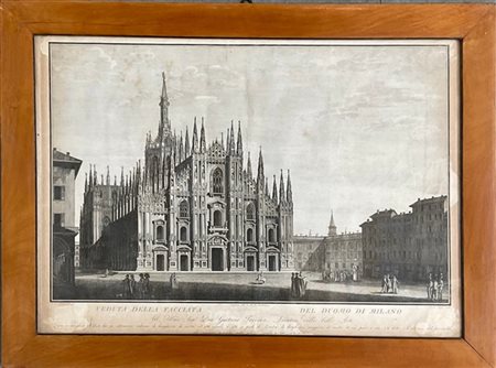 Pietro Rego , da Domenico Aspari (17145-1831) - Veduta della facciata del Duomo di Milano, acquaforte, (mm 770 x 570)