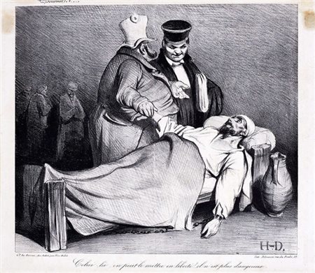 Coppia di litografie caricaturali del secolo XIX di cui una di Daumier, misure