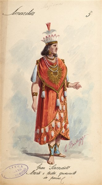 Dodici studi di costumi teatrali di misure differenti di cui uno firmato da Luigi Bartezago (1820-1905)