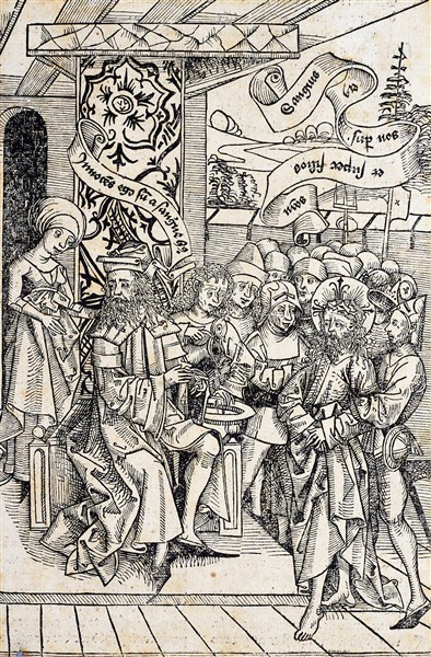 Anonimo xilografo tedesco Cristo davanti a Pilato (mm 250x165); La lavanda dei