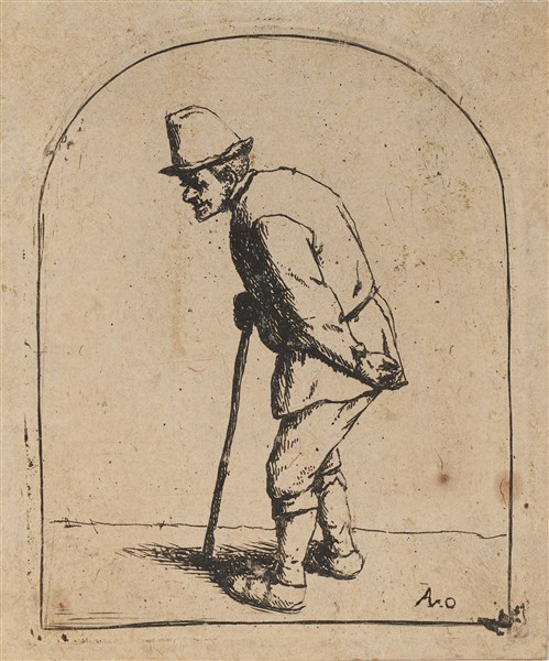 Adrien Van Ostade Peasant with a bent back, etching (82x69 mm);