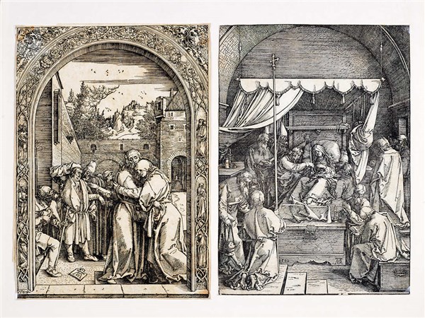 Albrecht Durer Due xilografie dalla serie Vita della Vergine; Incontro alla port