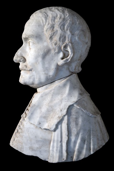 Roman sculptor, 17th century "A clergyman profile" marble sculpture (cm 45x70, bust: cm 45x38) (defects, the head is detached)