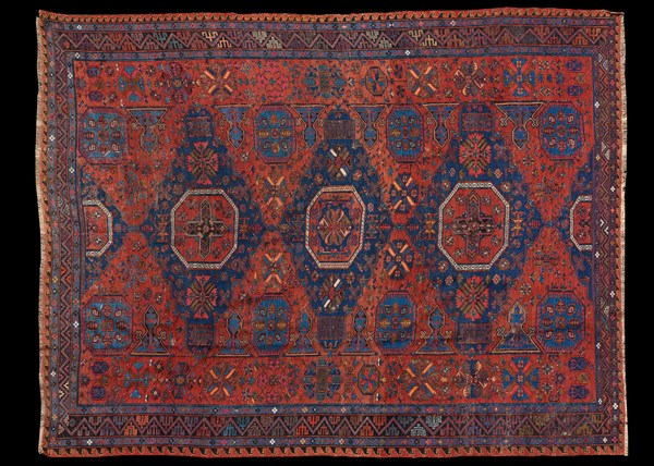 Tappeto Soumak, Caucaso, inizio secolo XX. Decoro con tre medaglioni romboidali