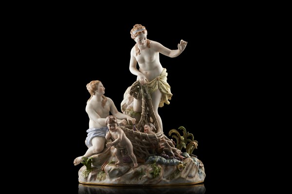 Meissen manufacture, 20th century "The Capture of Triton" polychrome porcelain group after the model of J. J. Kaendler (1706-1775), marked at base, engraved 120 (h. cm 30) (defects)