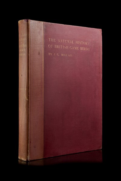 MILLAIS, John Guille. The natural history of British game birds. London: Longmans, Green, and Co., 1909. Folio, 18 chromolithographs and 17 photogravures protected by tissue-guard (minor and sporadic defects to the text). Publisher's cloth binding with gilt title to plates and spine (minor defects). First edition, one of 550 copies, of this elegant illustrated edition devoted to game birds of the British Isles
