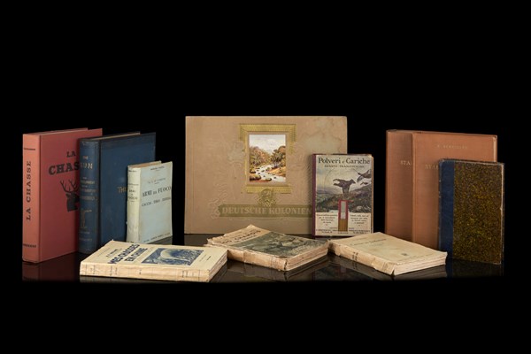 [CACCIA] Lotto composto da 10 opere degli inizi del XX secolo dedicate all'argomento. SI SEGNALA: Deutsche kolonien. dresda, 1936. 4to oblong. Album di figurine dedicato all'africa orientale tedesca (difetti)