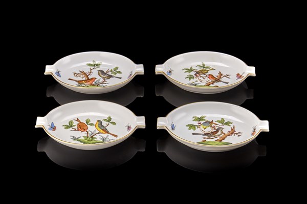 Manifattura di Herend. Gruppo di quattro posacenere in porcellana decorata in p