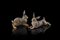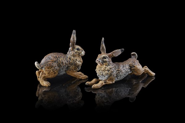 Manifattura austriaca, secolo XX "Lepri" due sculture in bronzo decorato in pol