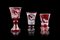 Manifattura di Boemia, fine secolo XIX. Gruppo di tre calici in vetro rosso inc