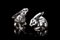 Coppia di sculture in argento raffiguranti lepri di dimensioni differenti. Titolo 800. Argentiere Miracoli (h. max cm 11,5) (g 1370) (lievi difetti)