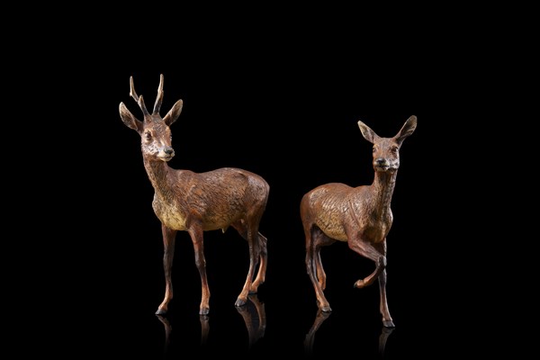 Manifattura austriaca "Caprioli" coppia di sculture in bronzo dipinto in policr