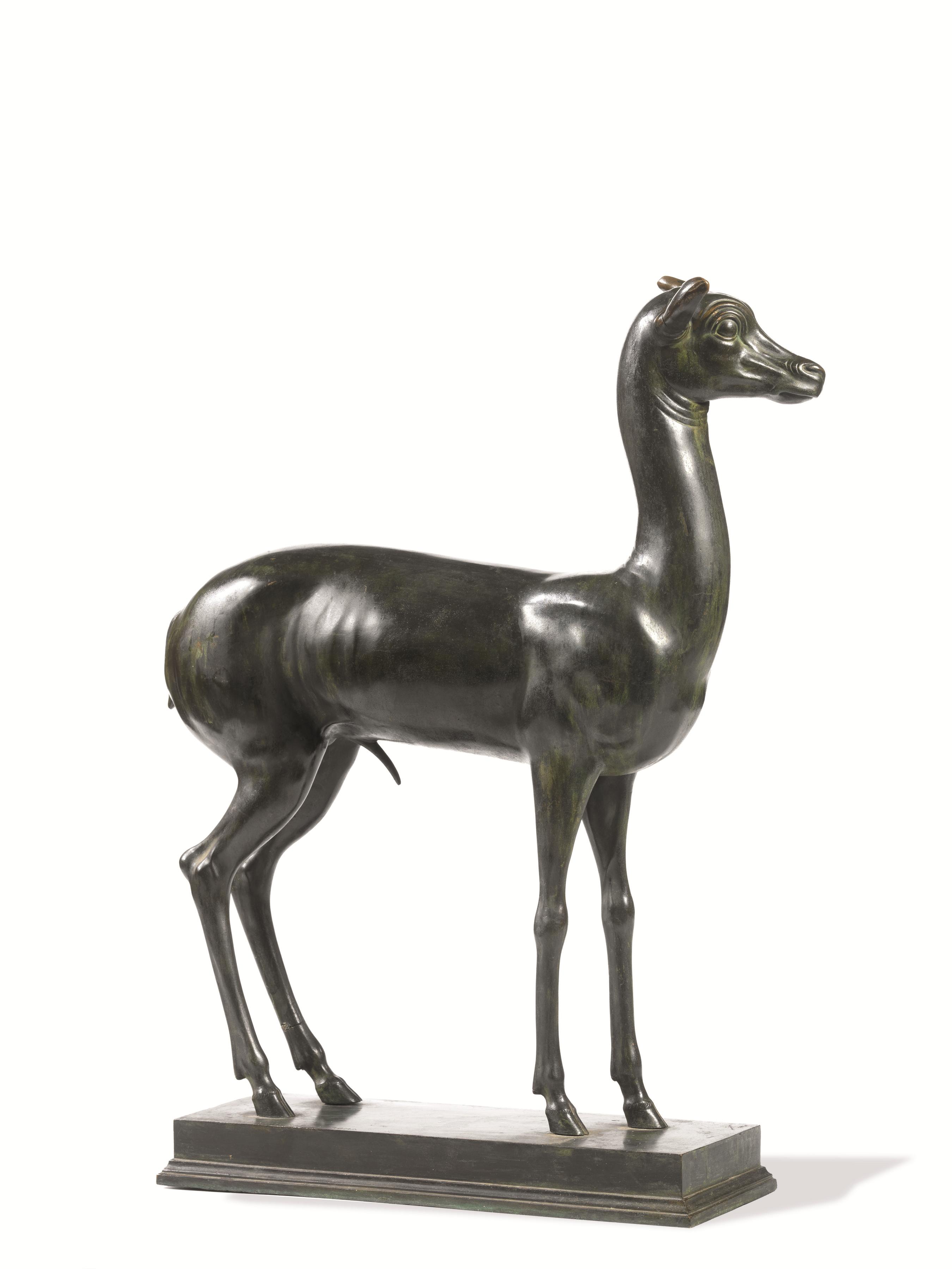 Cerbiatto, prima metà sec. XX, in bronzo su base rettangolare. Reca alla base l'incisione Fonderie Chiurazzi Napoli-Roma, alt. cm 56,5