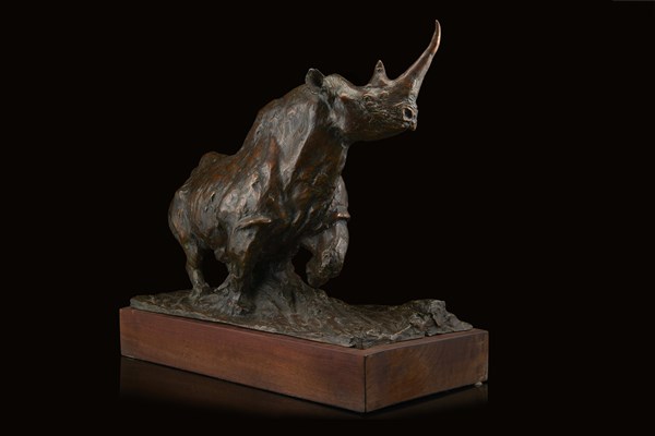 Dylan Lewis (1964) "Rinoceronte" 1994, scultura in bronzo firmata, data e numerata 8/12 alla base (cm 52x46x27) poggiante su base in legno