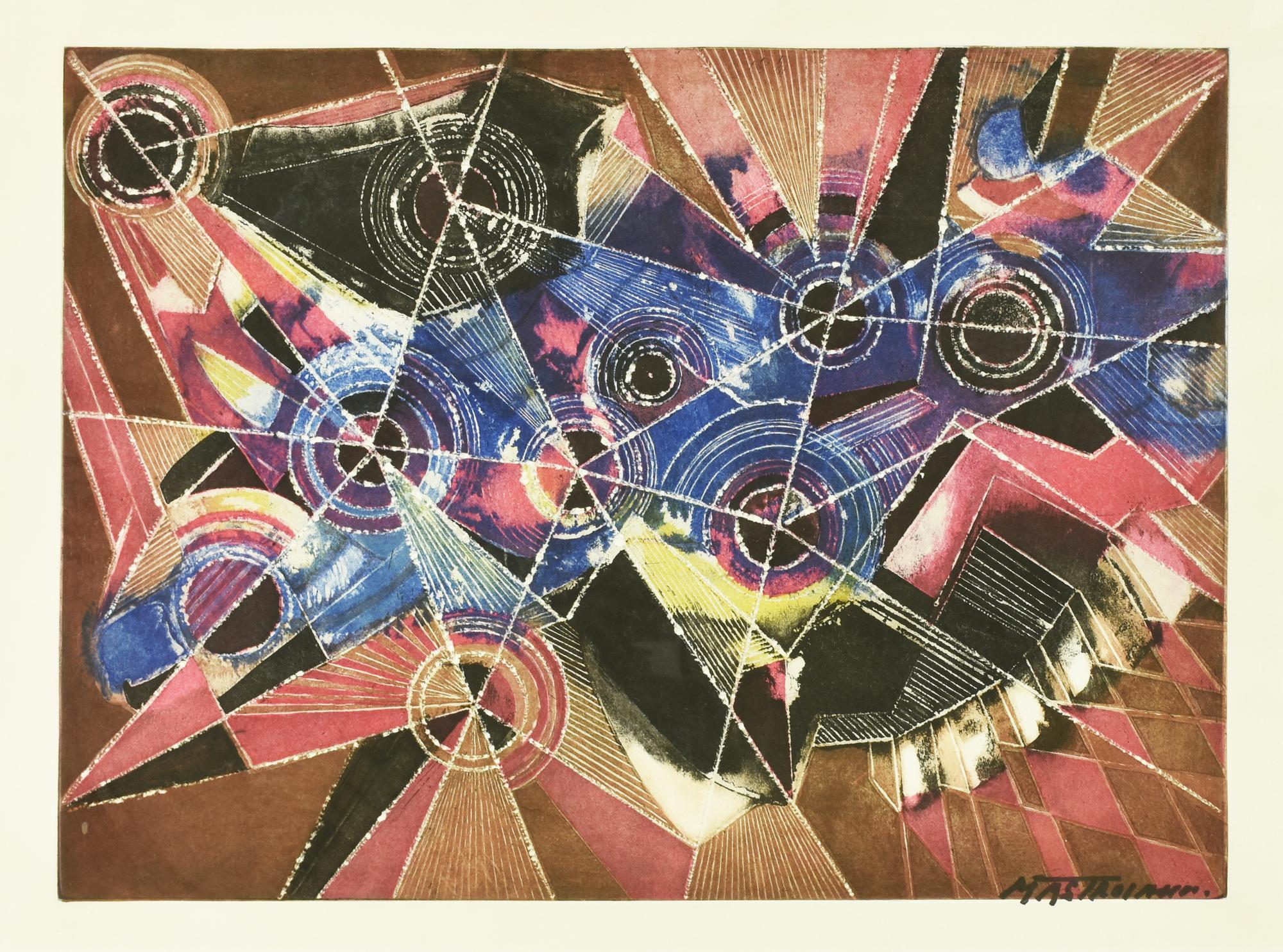 Umberto Mastroianni COMPOSIZIONE calcografia su carta, con interventi...