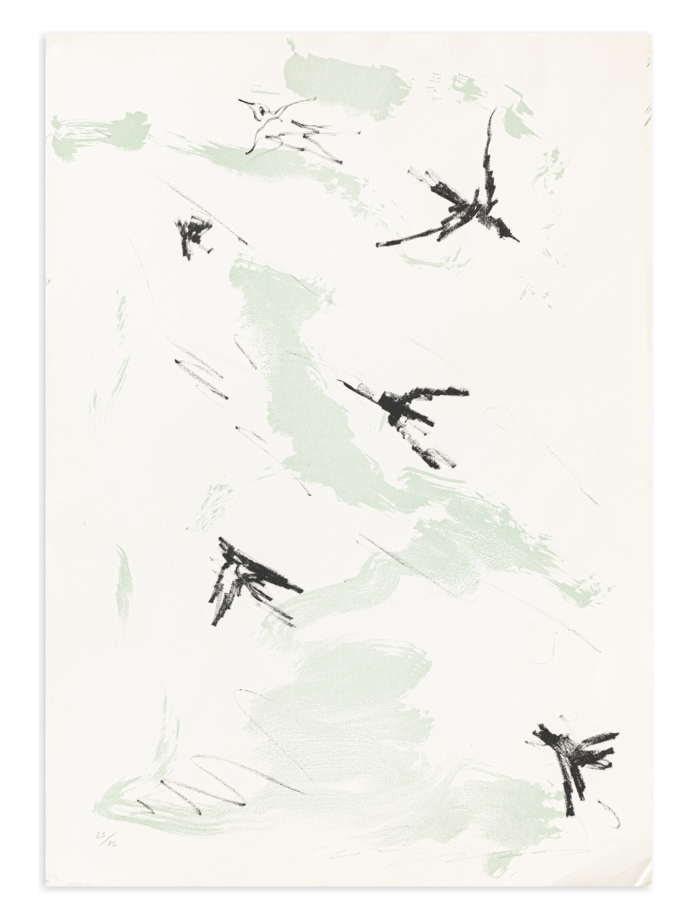 Si allegano due ulteriori litografie recanti firma indecifrata e numerazione a matita al fronte, cm 70x50 circa ciascuna