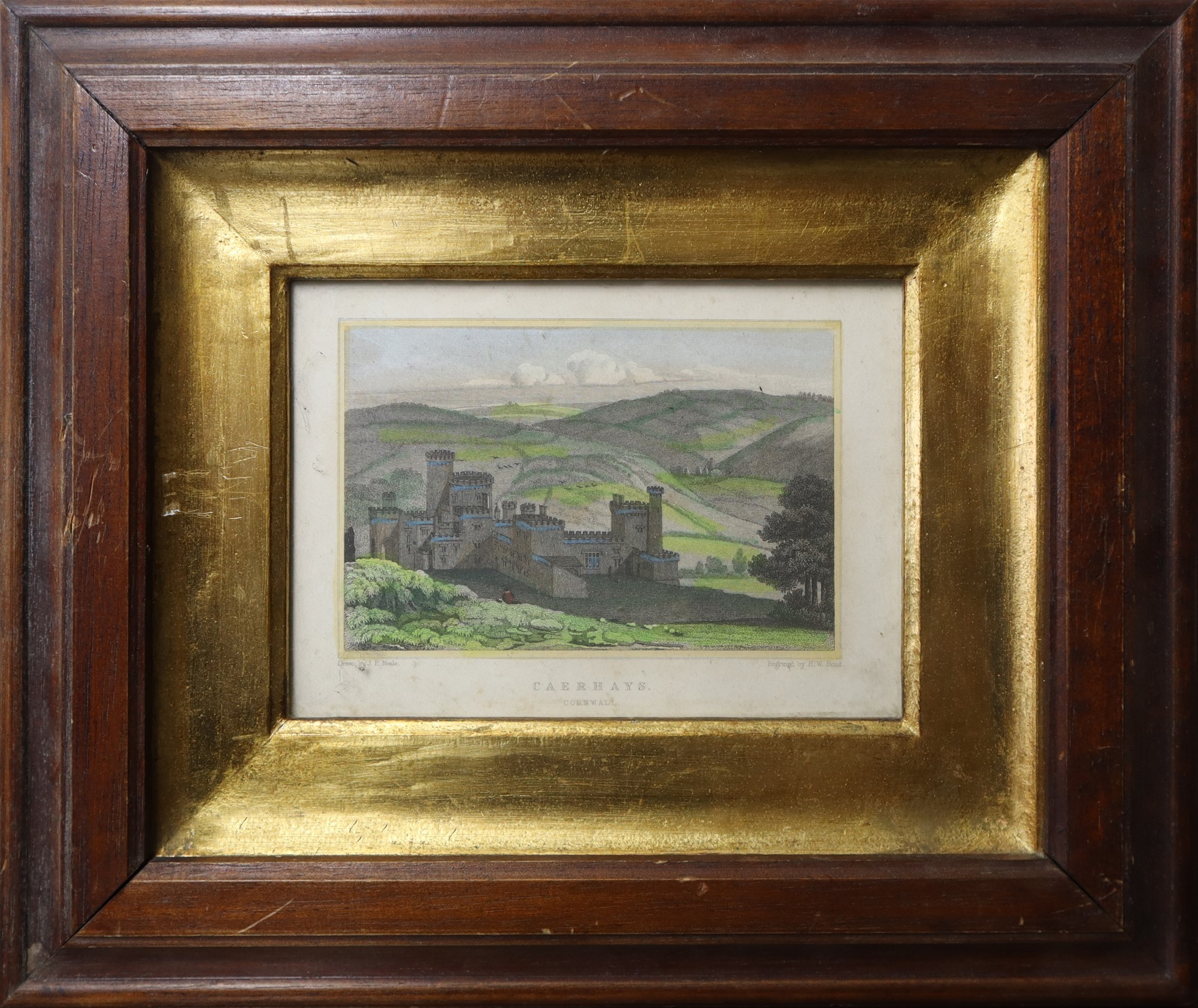 William Bond (British 1753-1859) - Caerhays Cornwall, 19° secolo h cm 11 x cm 15; in cornice cm 29 x cm 25 incisione acquarellata Dal disegno di J.P.Neale. Con certificato di autenticità al retro.
