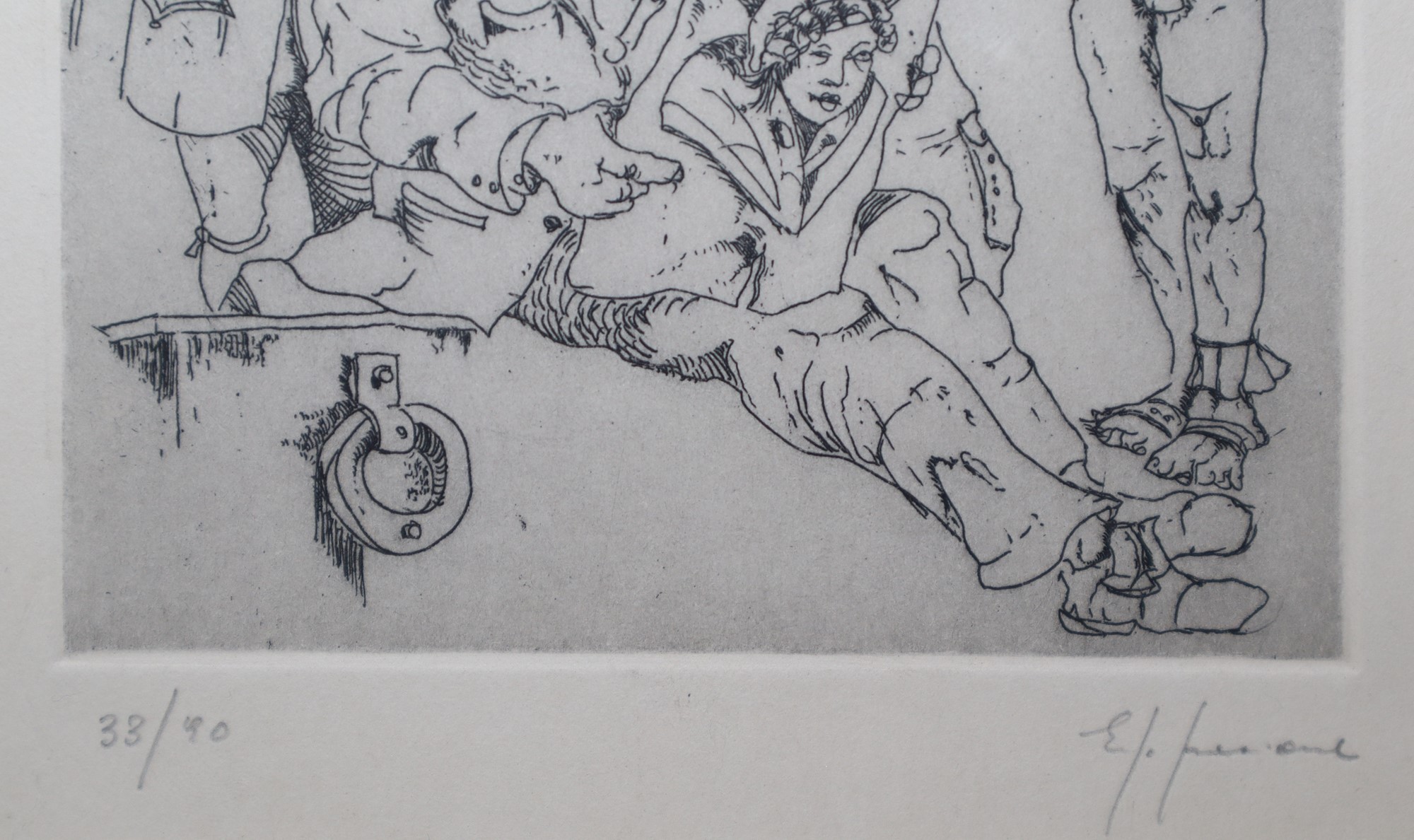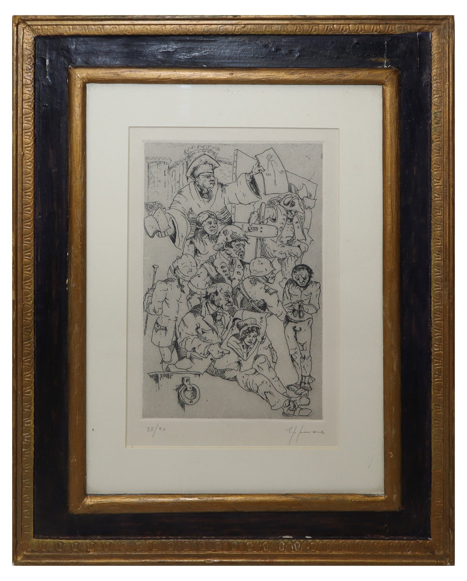 Enzo Frascione (Napoli 1929-Roma 2013) - Strenna ''Giuffrè'', 20° secolo cm 22,5 x cm 14,5, in cornice cm 38,5 x cm 29,5 Incisione ad acquaforte Acquaforte N° B 33/90, 1989.