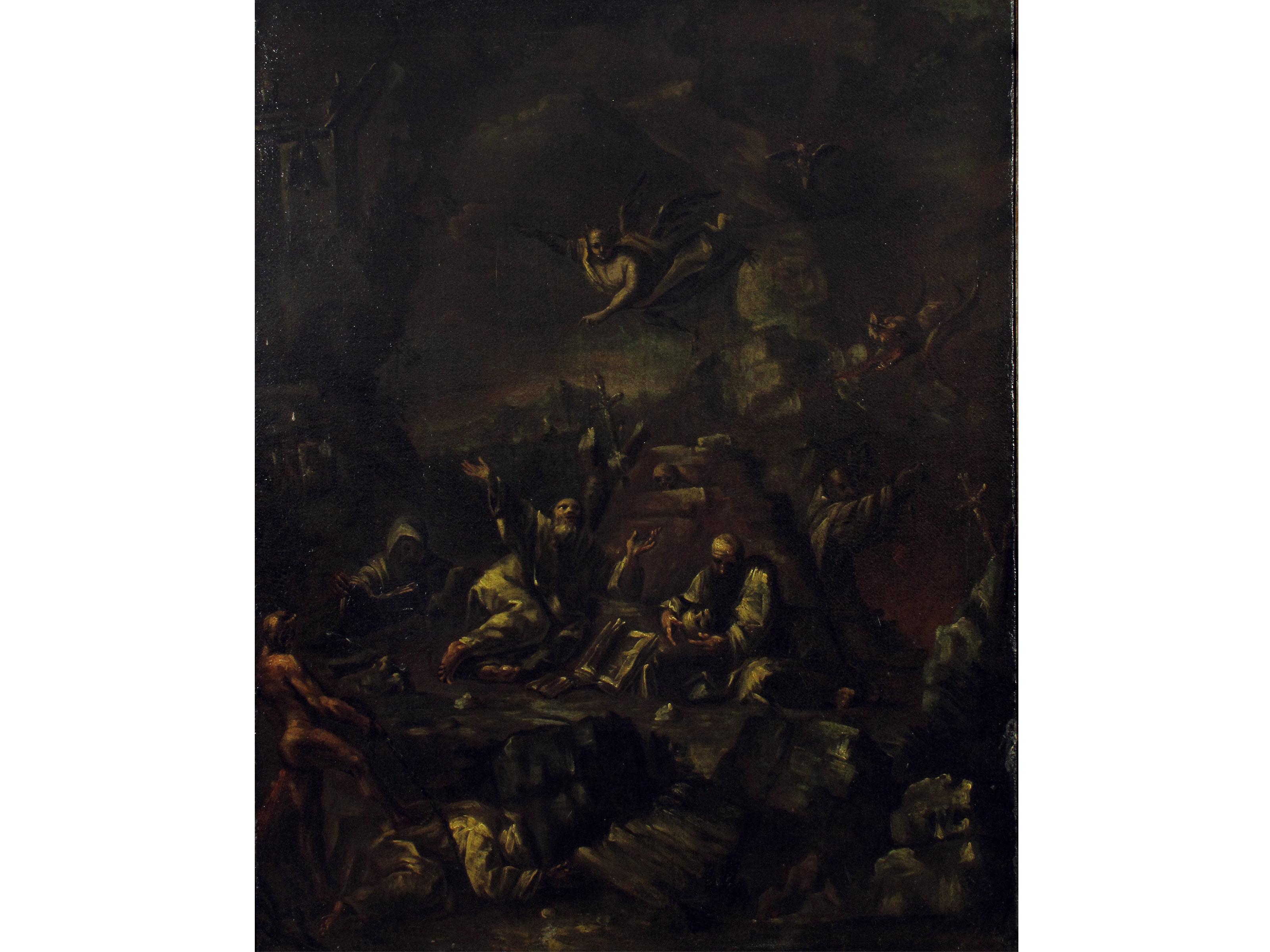 Attribuito ad Alessandro Magnasco Anacoreti penitenti Olio su tela Reca a tergo un'etichetta firmata dal professor G. Fiocco il quale attribuisce il dipinto all'artista Alessandro Magnasco. Misure 74,5x58 cm