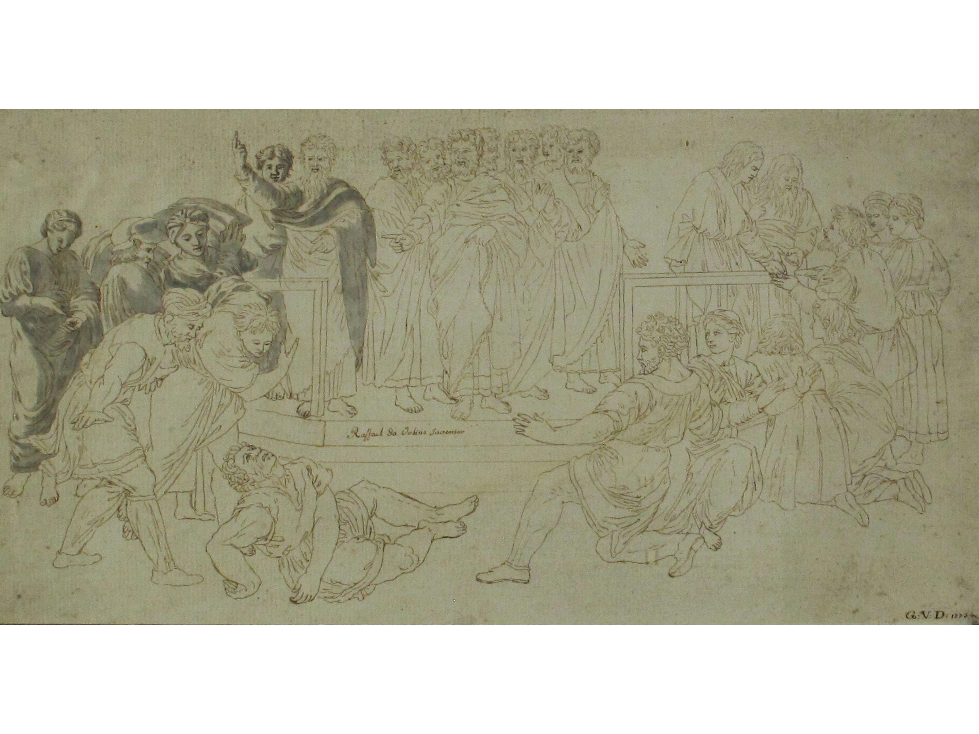 Monogrammista G.V.D. La Scuola d'Atene China su carta Datato 1773 Misure 21x40 cm