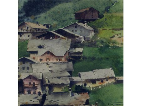 Aurelio Craffonara (Gallarate 1875-Genova 1945) Paesaggio montano Acquarello su carta Firmato Misure 15x15,5 cm