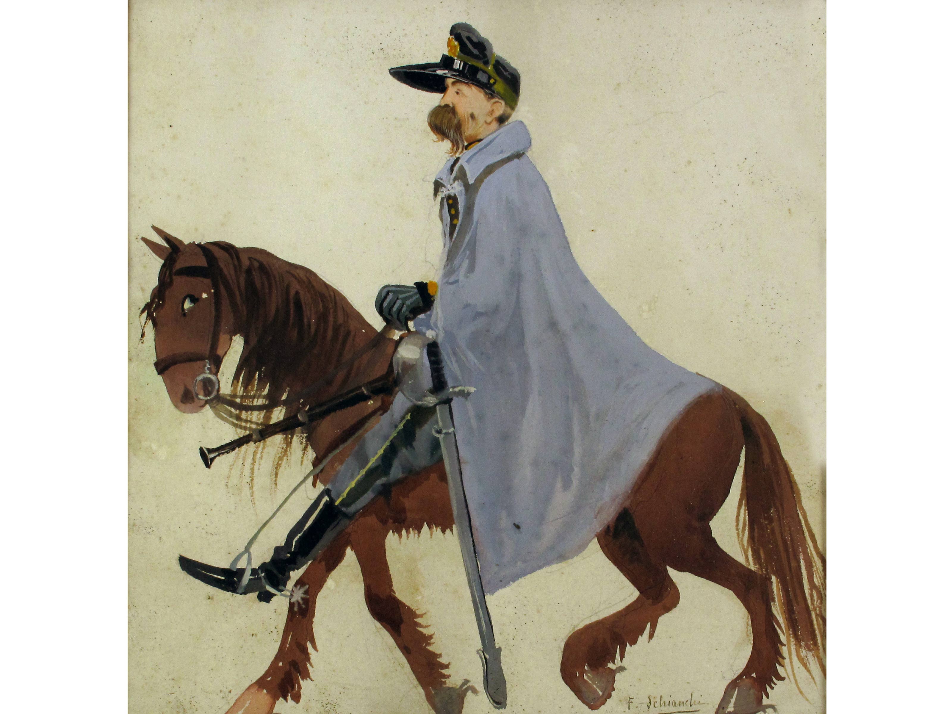 Federico Schianchi (Modena 1858-Roma 1919) Soldato a cavallo Tempera su carta...