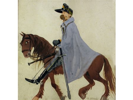 Federico Schianchi (Modena 1858-Roma 1919) Soldato a cavallo Tempera su carta Firmato Misure 28,3x29 cm