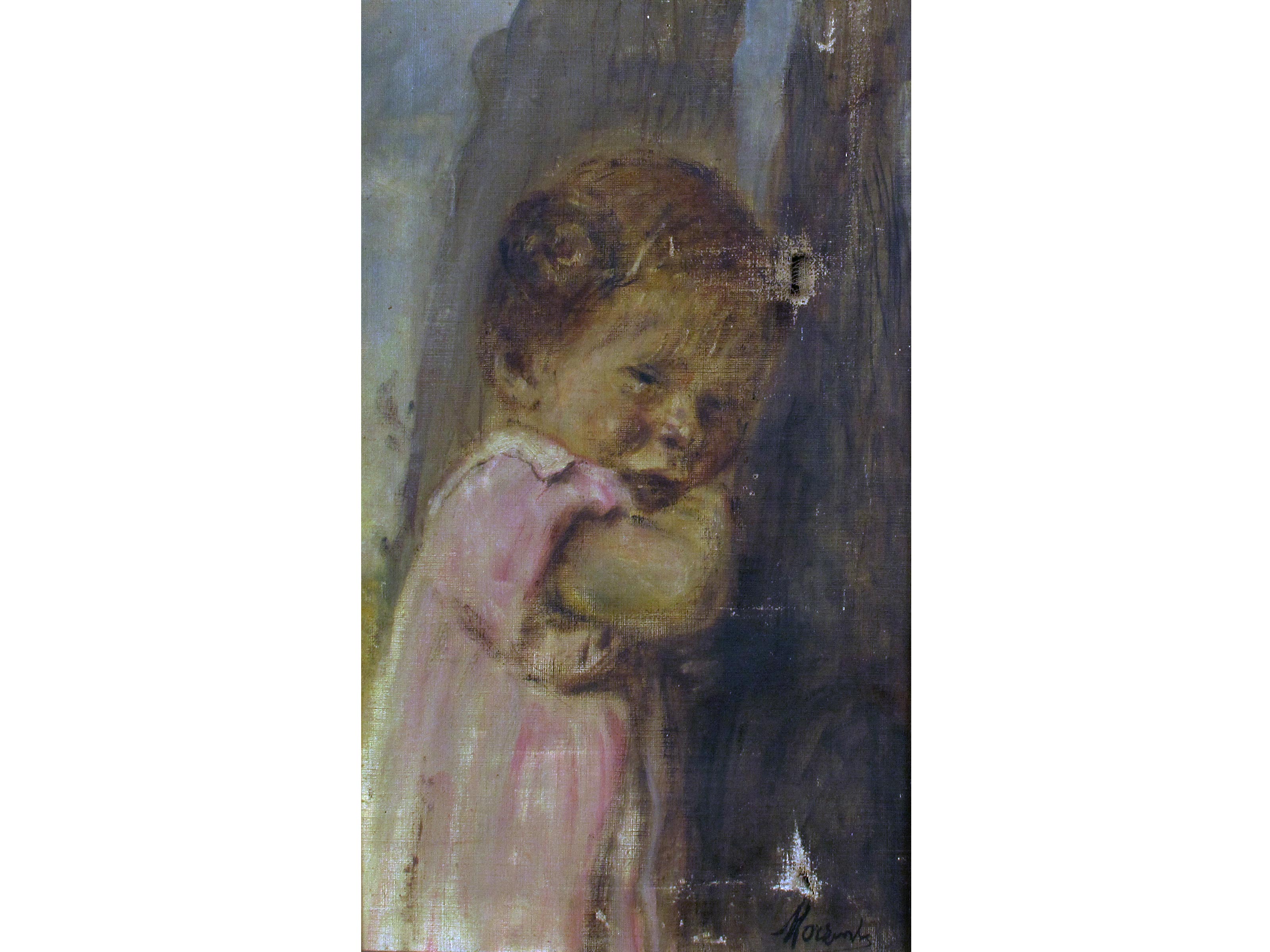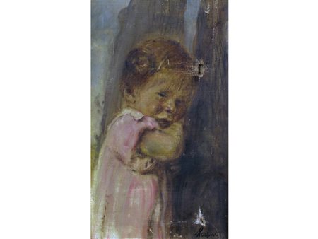 Natale Morzenti (Silvano d'Orba 1884-Martinengo 1947) Bambina Olio su tela Firmato Rotture Misure 48,5x29 cm