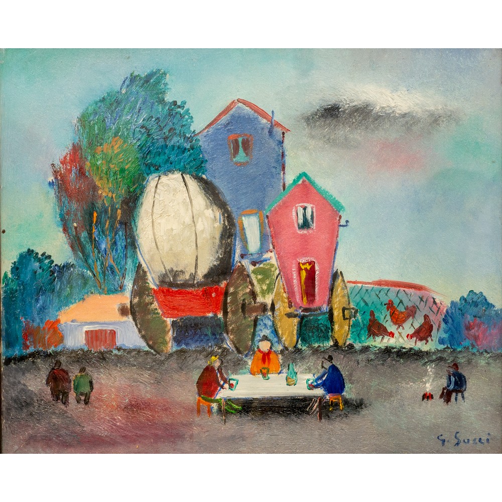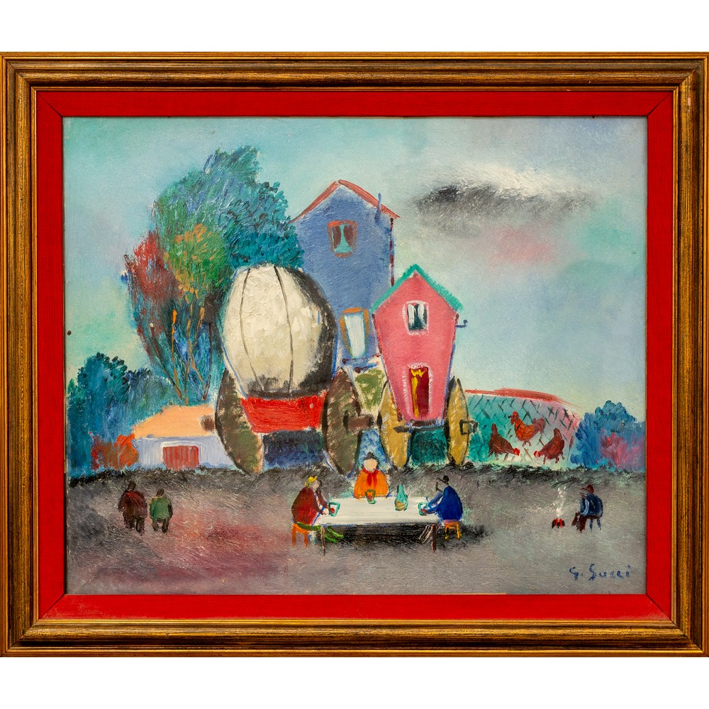 GIUSEPPE SUCCI, Fattoria con personaggi, Olio su tela