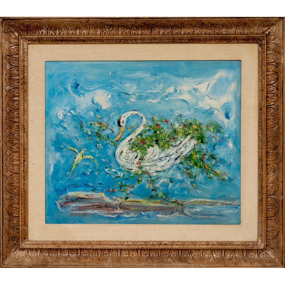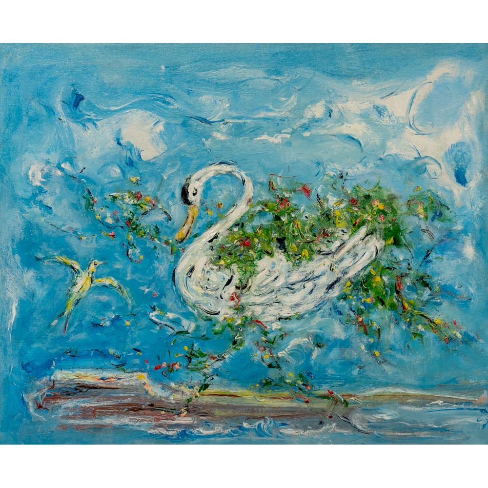 GIOVANNI STRADONE, Cigno fiorito, Olio su tela