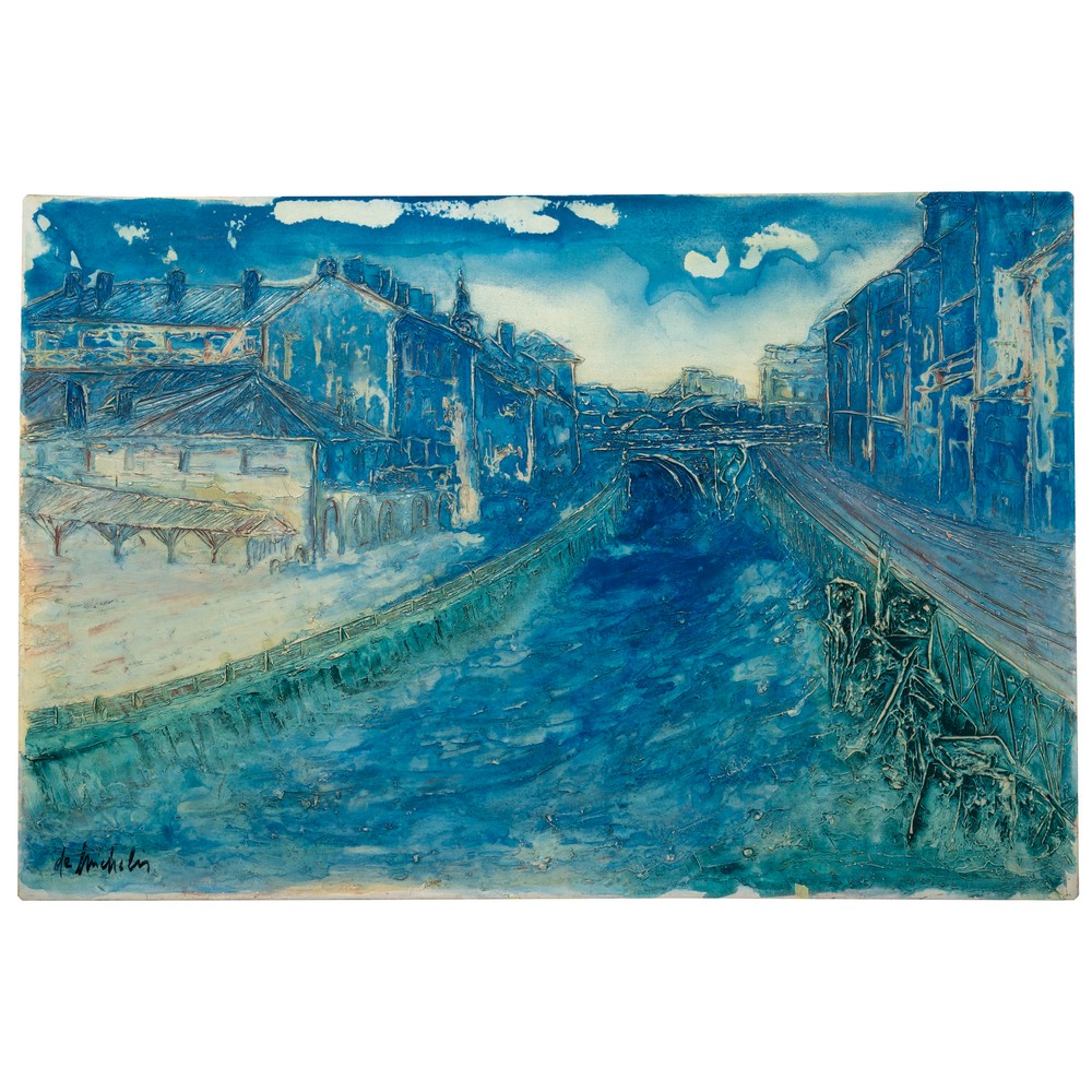 GIACOMO DE MICHELIS, Uno scorcio del Naviglio, Olio su tela