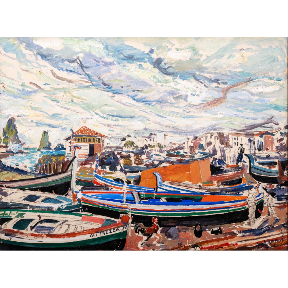 Lot 113 | GIULIO D'ANGELO Barche di Aci Trezza, Olio su tela
