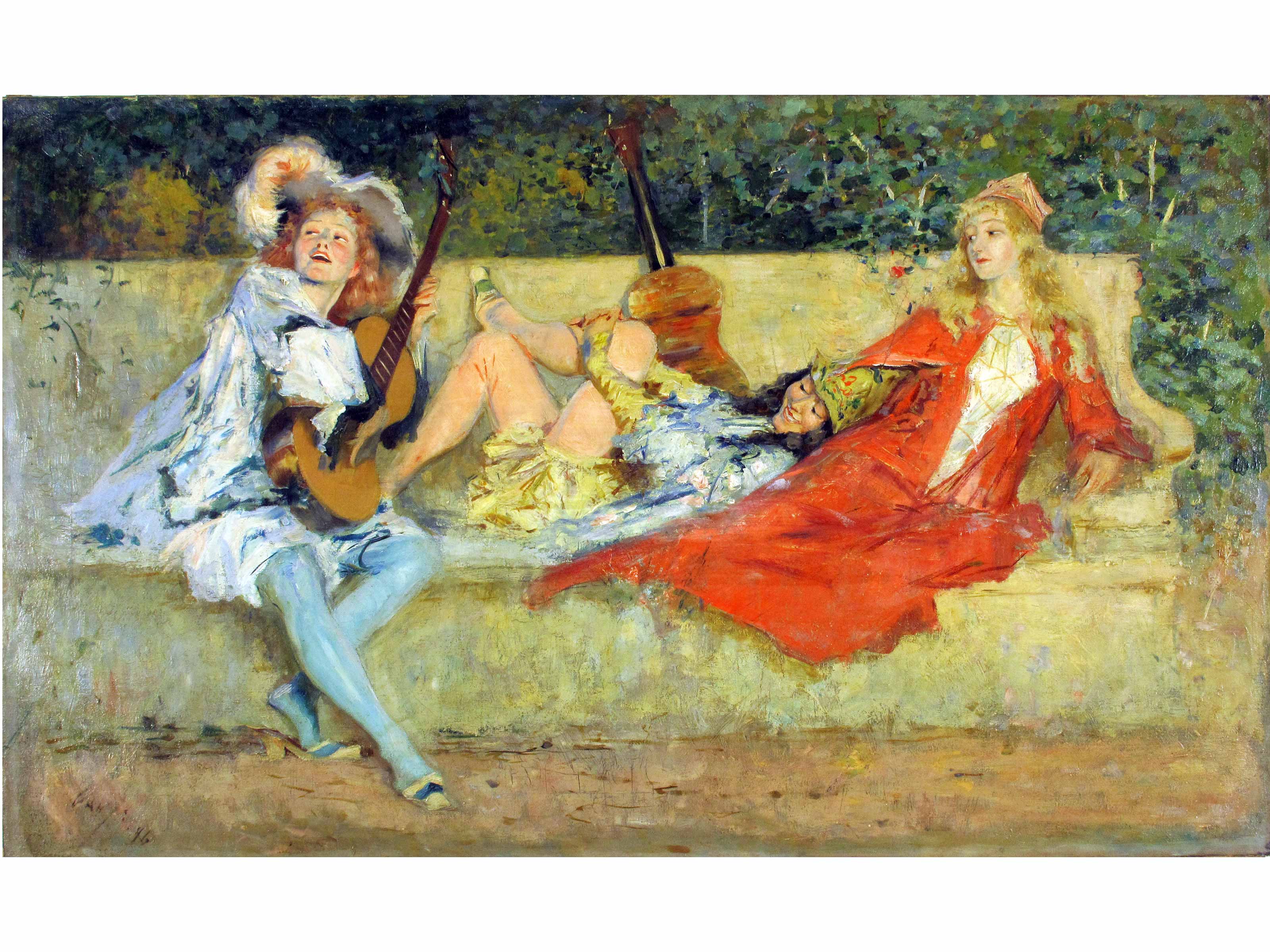 Firma illeggibile (XIX secolo) Menestrello Olio su tela Firmato Datato 1896...