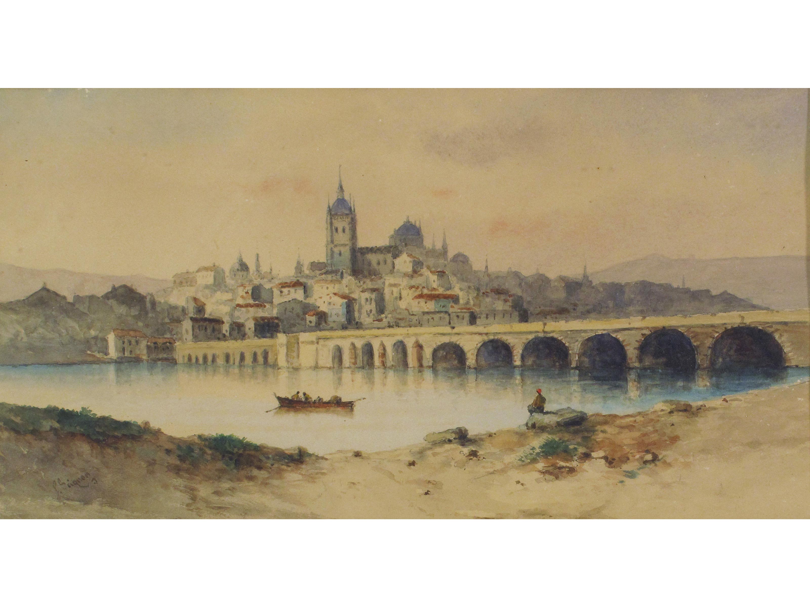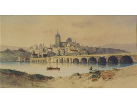 Firma illeggibile (XIX secolo) Paesaggio Acquarello su carta Firmato Misure 22x42 cm